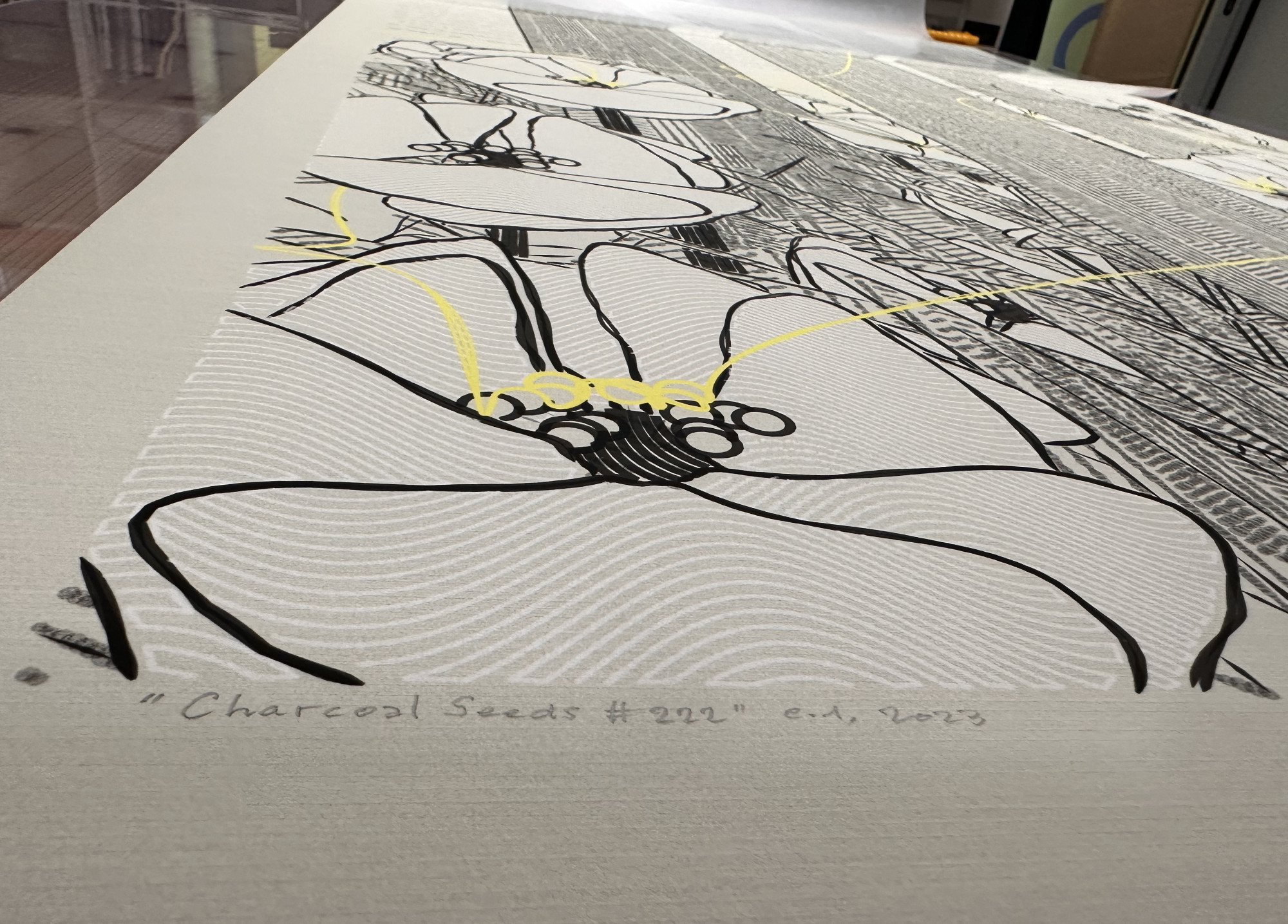 Since the generative process _that uses programming code and the intervention of randomness_ was used to design the physical pieces, the long-form generative series Charcoal Seeds is a natural way to seamlessly extend back into the digital realm the ideas of matter and physicality, while showing the elements at work in the creation process.
