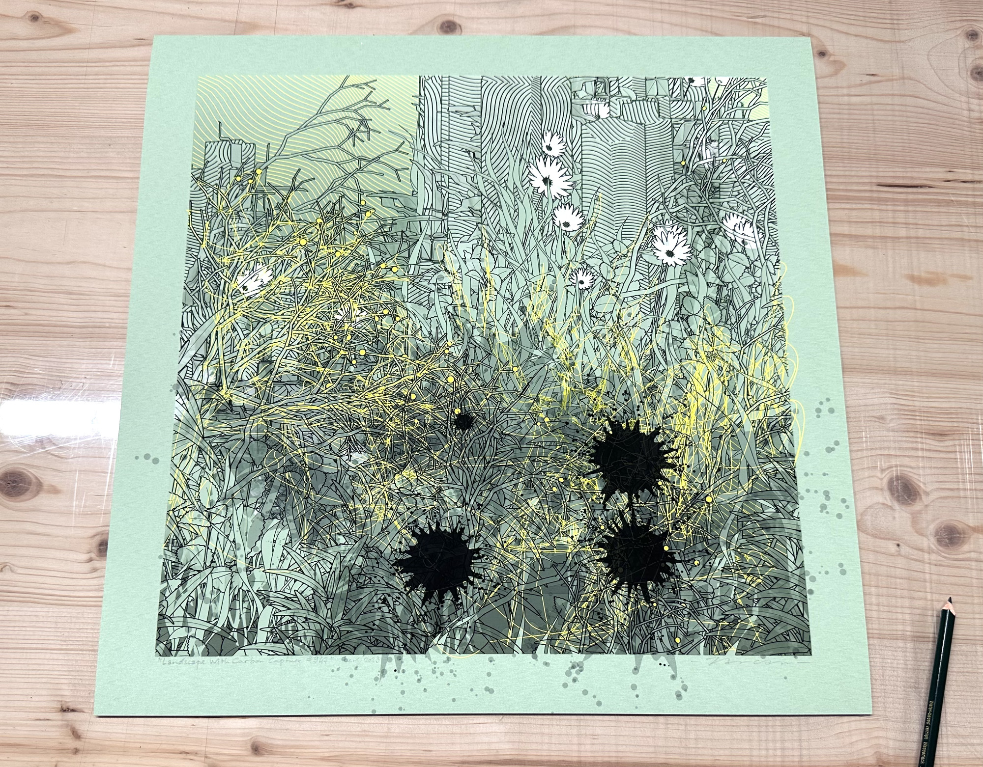 "Landscape with Carbon Capture" is a critique of my own environmental consciousness as an artist working with technology around natural themes. Although I do not know any solution, although I am helpless just like you, I want to fight with what I’ve got. I want to acknowledge the great hypocrisy of our times. Carbon emissions are here to stay, they'll stain my canvas, no matter how green the colours on my palette.