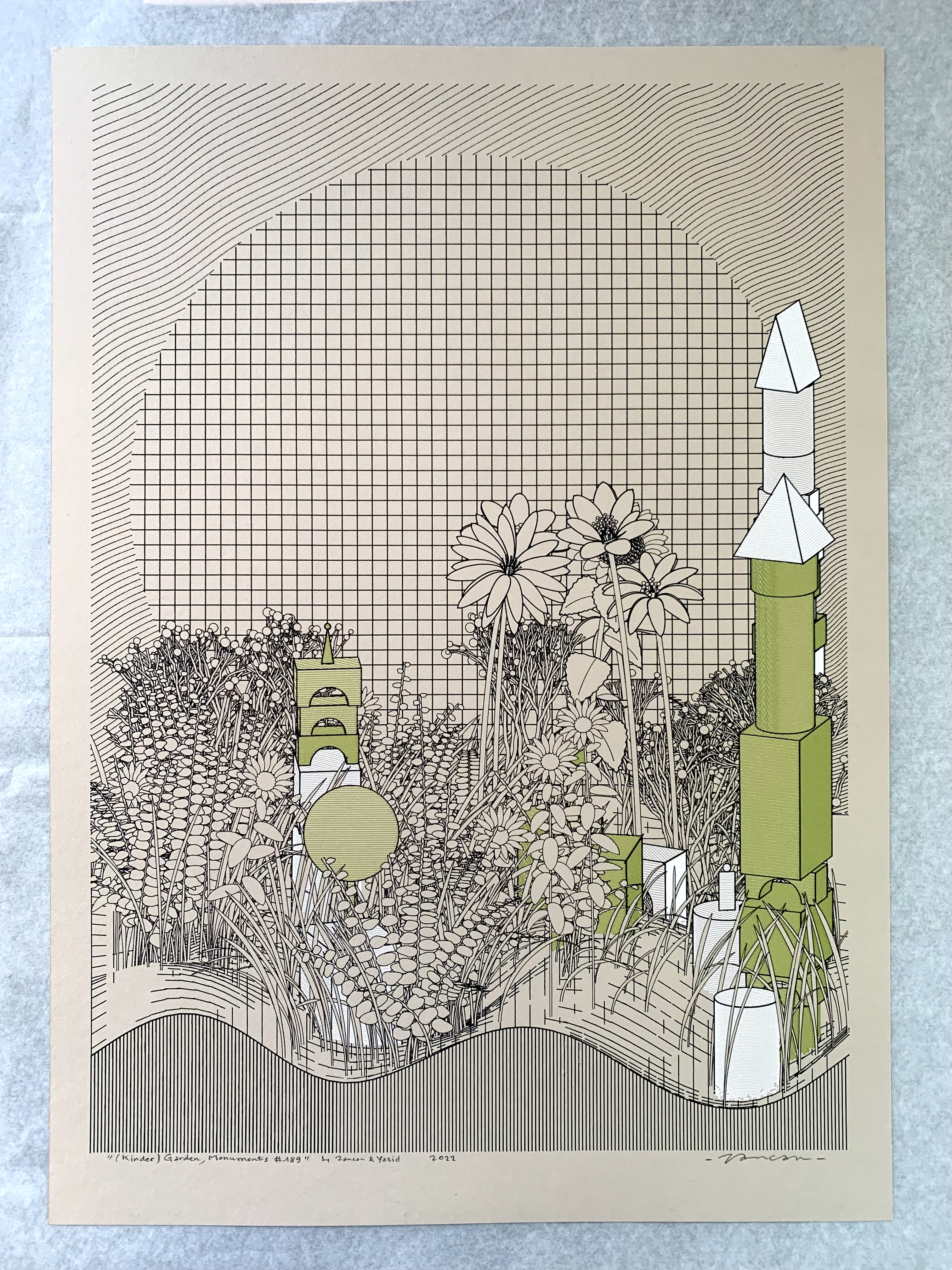 Coded in Vanilla JS, the project combines Yazid's iconic “Hashed/Hatched” aesthetic incorporated into childhood wooden toy block structures, and Zancan's signature lush foliage and framework, which enables all iterations to be plottable.