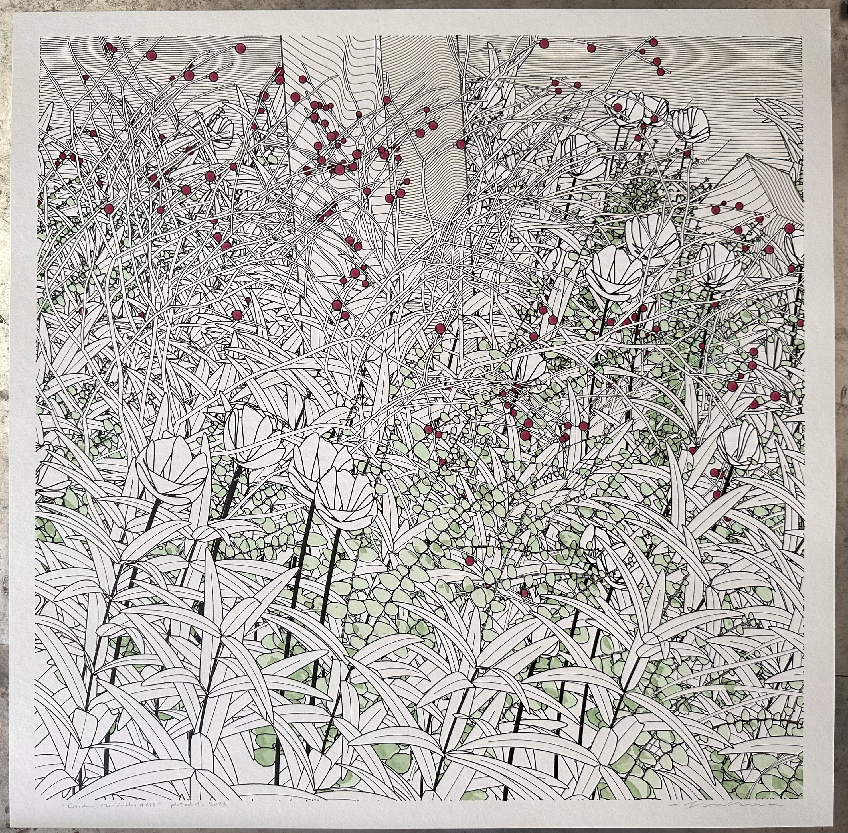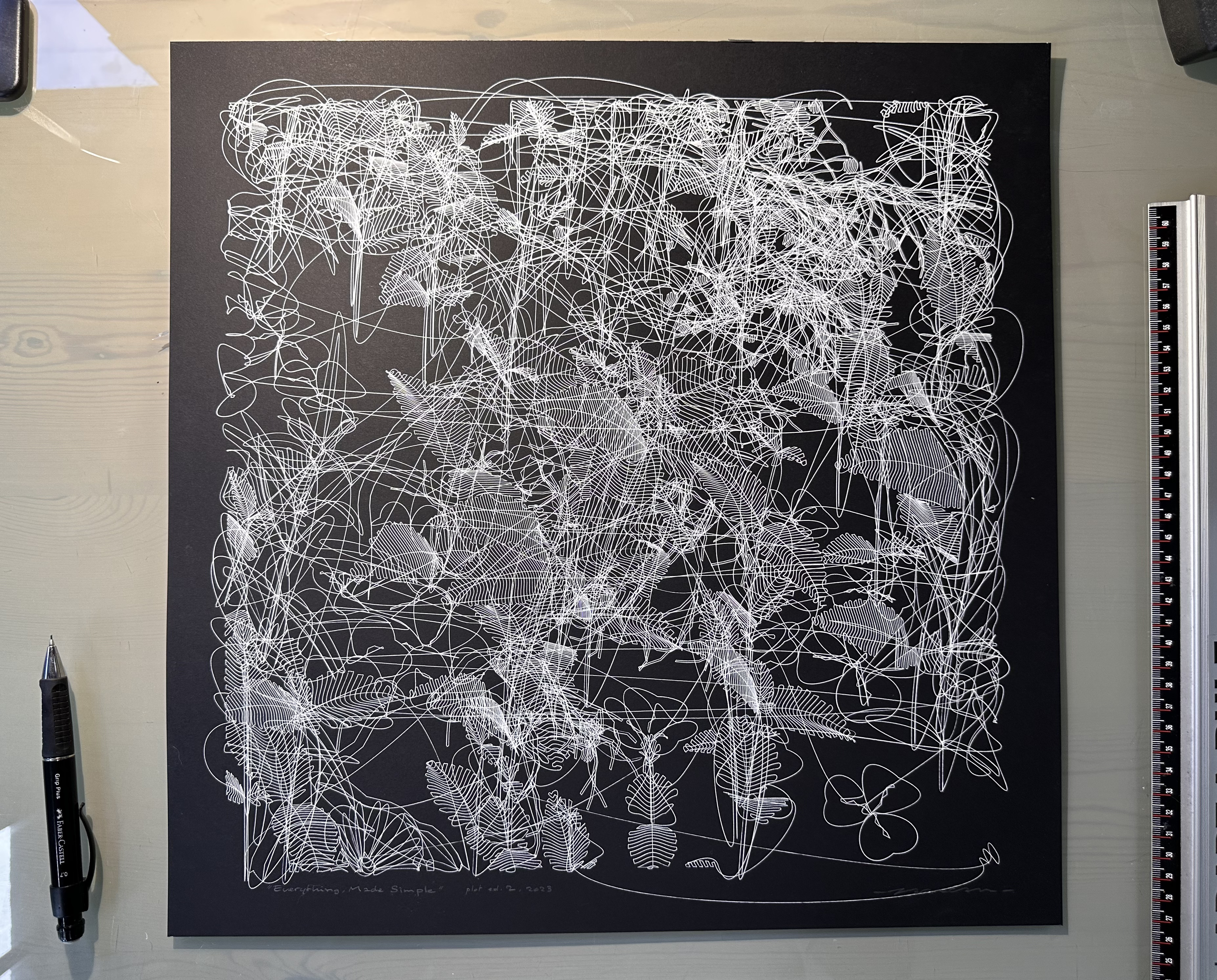 Plots are drawings traced with "real" pencils by the artist, assisted by a robotic device. Plots require solid craftsmanship and are hard to make, they can need several days of work and are limited in size. zancan's plots are scarce and valuable.