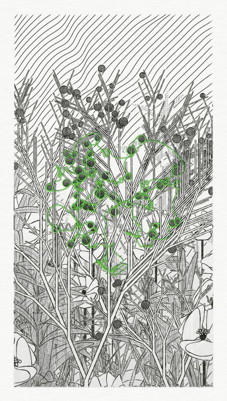 In each iteration a virtual seed will encapsulates the essence of organic forms and patterns. The graphic style itself tries to convey the organic feeling of tools and materials such as chalk, ink, paintbrushes.