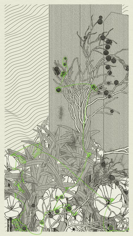 In each iteration a virtual seed will encapsulates the essence of organic forms and patterns. The graphic style itself tries to convey the organic feeling of tools and materials such as chalk, ink, paintbrushes.