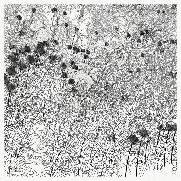 The initial goal was to use mathematical formulas for creating patterns inspired by the density of nature, that could be used by a pen plotter, so it kept focusing on outputting vector lines. This history and practice produced a graphical style based on line strokes, plus occasionally some transparent, filled shapes.