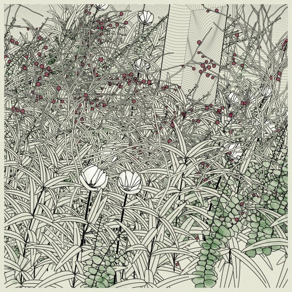 The initial goal was to use mathematical formulas for creating patterns inspired by the density of nature, that could be used by a pen plotter, so it kept focusing on outputting vector lines. This history and practice produced a graphical style based on line strokes, plus occasionally some transparent, filled shapes.