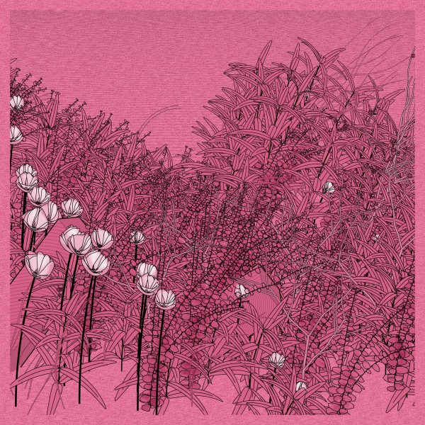 The initial goal was to use mathematical formulas for creating patterns inspired by the density of nature, that could be used by a pen plotter, so it kept focusing on outputting vector lines. This history and practice produced a graphical style based on line strokes, plus occasionally some transparent, filled shapes.
