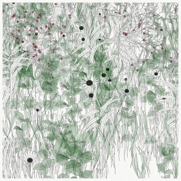 The initial goal was to use mathematical formulas for creating patterns inspired by the density of nature, that could be used by a pen plotter, so it kept focusing on outputting vector lines. This history and practice produced a graphical style based on line strokes, plus occasionally some transparent, filled shapes.