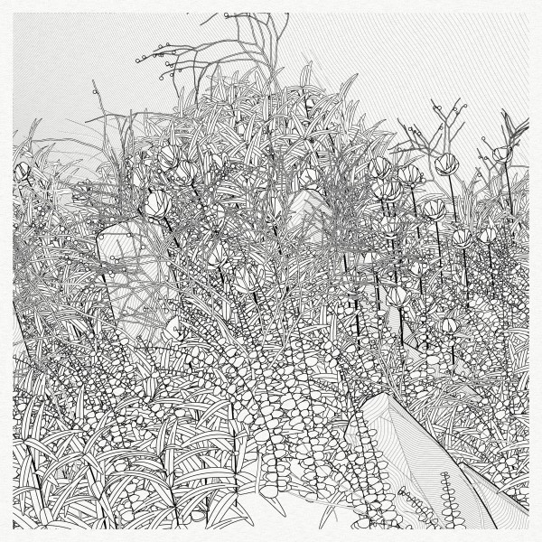 The initial goal was to use mathematical formulas for creating patterns inspired by the density of nature, that could be used by a pen plotter, so it kept focusing on outputting vector lines. This history and practice produced a graphical style based on line strokes, plus occasionally some transparent, filled shapes.