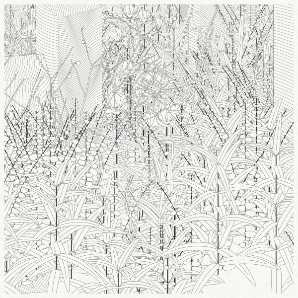 The initial goal was to use mathematical formulas for creating patterns inspired by the density of nature, that could be used by a pen plotter, so it kept focusing on outputting vector lines. This history and practice produced a graphical style based on line strokes, plus occasionally some transparent, filled shapes.
