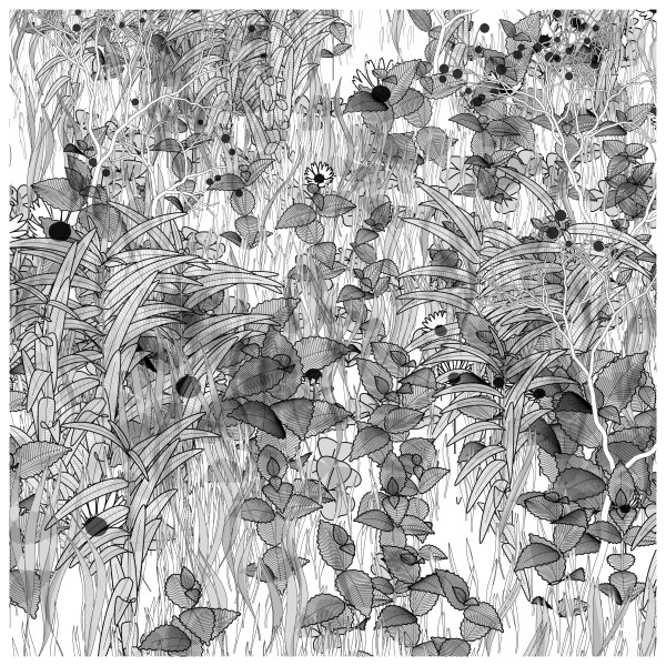 The initial goal was to use mathematical formulas for creating patterns inspired by the density of nature, that could be used by a pen plotter, so it kept focusing on outputting vector lines. This history and practice produced a graphical style based on line strokes, plus occasionally some transparent, filled shapes.
