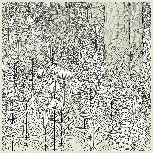 The initial goal was to use mathematical formulas for creating patterns inspired by the density of nature, that could be used by a pen plotter, so it kept focusing on outputting vector lines. This history and practice produced a graphical style based on line strokes, plus occasionally some transparent, filled shapes.