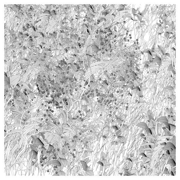The initial goal was to use mathematical formulas for creating patterns inspired by the density of nature, that could be used by a pen plotter, so it kept focusing on outputting vector lines. This history and practice produced a graphical style based on line strokes, plus occasionally some transparent, filled shapes.