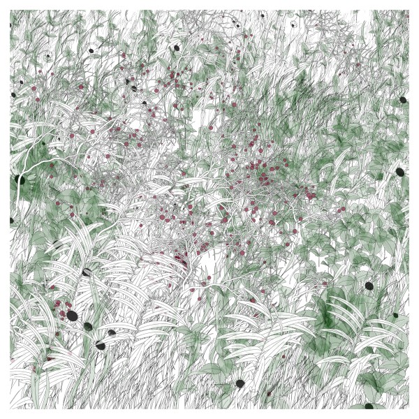 The initial goal was to use mathematical formulas for creating patterns inspired by the density of nature, that could be used by a pen plotter, so it kept focusing on outputting vector lines. This history and practice produced a graphical style based on line strokes, plus occasionally some transparent, filled shapes.