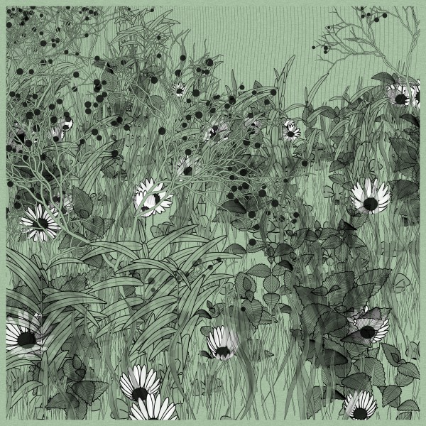 The initial goal was to use mathematical formulas for creating patterns inspired by the density of nature, that could be used by a pen plotter, so it kept focusing on outputting vector lines. This history and practice produced a graphical style based on line strokes, plus occasionally some transparent, filled shapes.