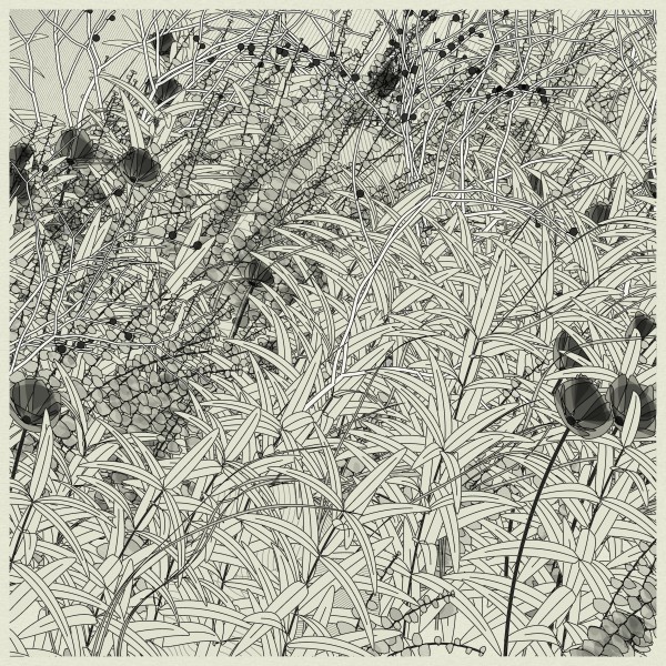The initial goal was to use mathematical formulas for creating patterns inspired by the density of nature, that could be used by a pen plotter, so it kept focusing on outputting vector lines. This history and practice produced a graphical style based on line strokes, plus occasionally some transparent, filled shapes.