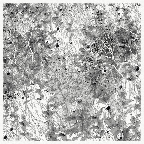 The initial goal was to use mathematical formulas for creating patterns inspired by the density of nature, that could be used by a pen plotter, so it kept focusing on outputting vector lines. This history and practice produced a graphical style based on line strokes, plus occasionally some transparent, filled shapes.