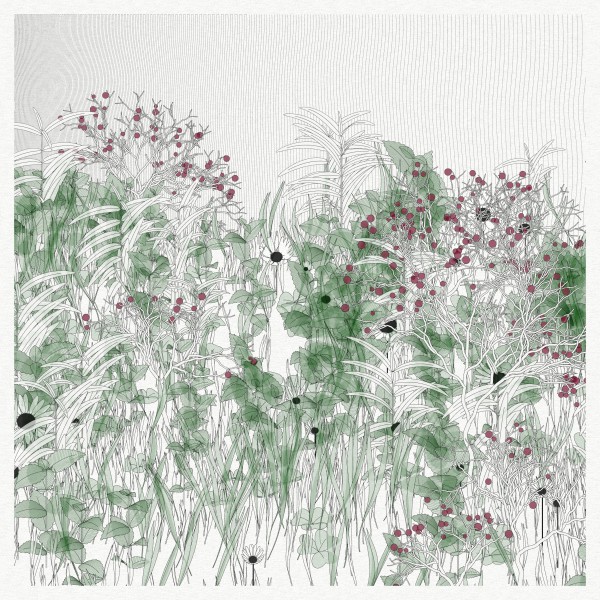 The initial goal was to use mathematical formulas for creating patterns inspired by the density of nature, that could be used by a pen plotter, so it kept focusing on outputting vector lines. This history and practice produced a graphical style based on line strokes, plus occasionally some transparent, filled shapes.