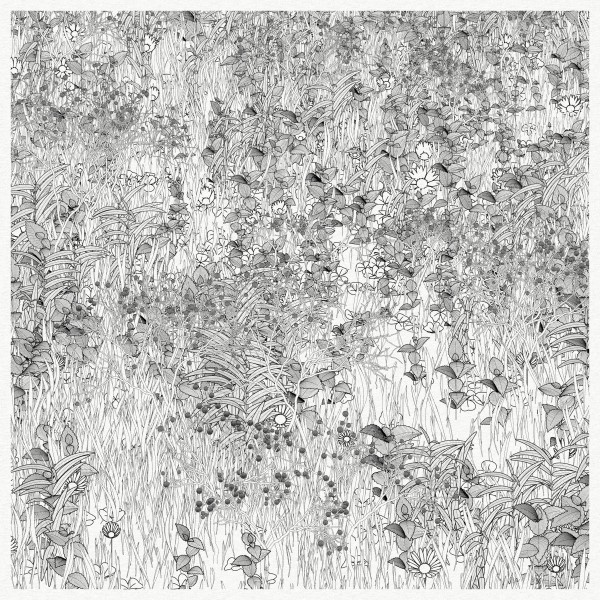The initial goal was to use mathematical formulas for creating patterns inspired by the density of nature, that could be used by a pen plotter, so it kept focusing on outputting vector lines. This history and practice produced a graphical style based on line strokes, plus occasionally some transparent, filled shapes.