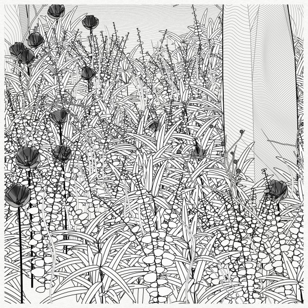 The initial goal was to use mathematical formulas for creating patterns inspired by the density of nature, that could be used by a pen plotter, so it kept focusing on outputting vector lines. This history and practice produced a graphical style based on line strokes, plus occasionally some transparent, filled shapes.