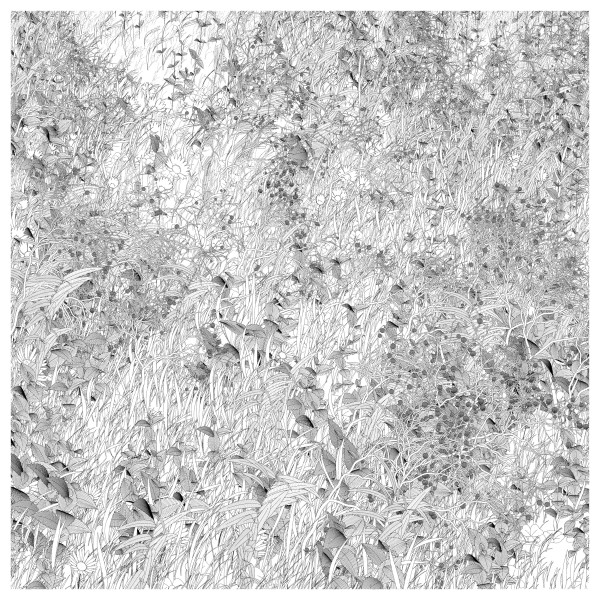 The initial goal was to use mathematical formulas for creating patterns inspired by the density of nature, that could be used by a pen plotter, so it kept focusing on outputting vector lines. This history and practice produced a graphical style based on line strokes, plus occasionally some transparent, filled shapes.