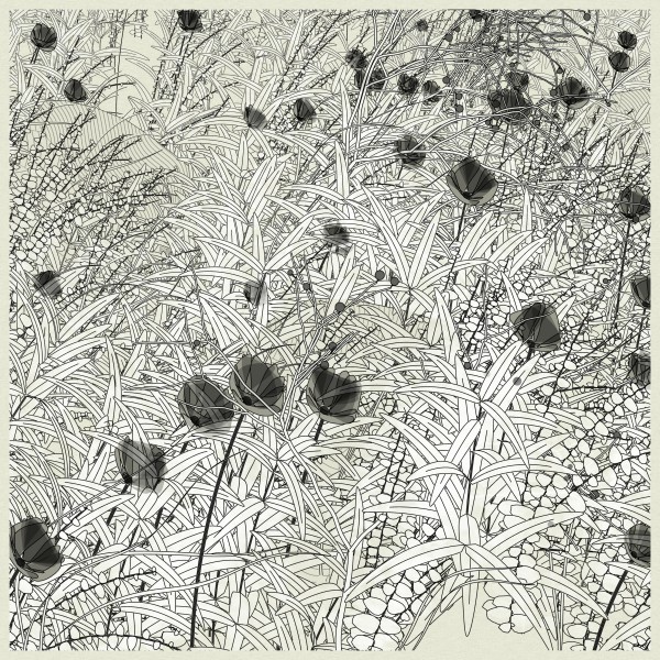 The initial goal was to use mathematical formulas for creating patterns inspired by the density of nature, that could be used by a pen plotter, so it kept focusing on outputting vector lines. This history and practice produced a graphical style based on line strokes, plus occasionally some transparent, filled shapes.