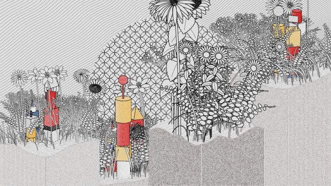 Coded in Vanilla JS, the project combines Yazid's iconic “Hashed/Hatched” aesthetic incorporated into childhood wooden toy block structures, and Zancan's signature lush foliage and framework, which enables all iterations to be plottable.