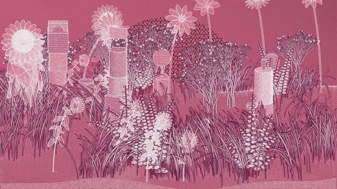 Coded in Vanilla JS, the project combines Yazid's iconic “Hashed/Hatched” aesthetic incorporated into childhood wooden toy block structures, and Zancan's signature lush foliage and framework, which enables all iterations to be plottable.