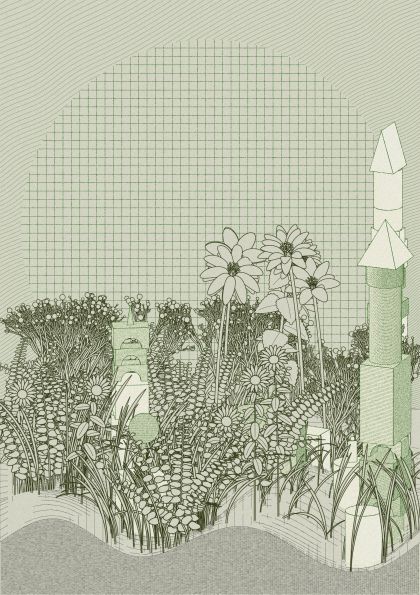 Coded in Vanilla JS, the project combines Yazid's iconic “Hashed/Hatched” aesthetic incorporated into childhood wooden toy block structures, and Zancan's signature lush foliage and framework, which enables all iterations to be plottable.