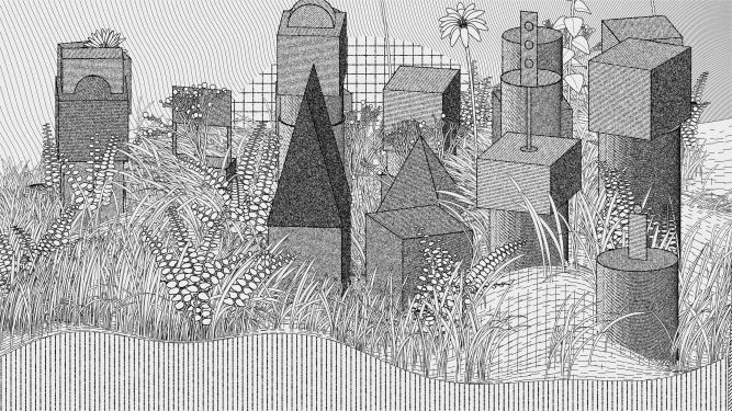 Coded in Vanilla JS, the project combines Yazid's iconic “Hashed/Hatched” aesthetic incorporated into childhood wooden toy block structures, and Zancan's signature lush foliage and framework, which enables all iterations to be plottable.