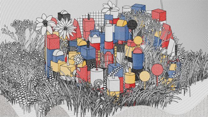 Coded in Vanilla JS, the project combines Yazid's iconic “Hashed/Hatched” aesthetic incorporated into childhood wooden toy block structures, and Zancan's signature lush foliage and framework, which enables all iterations to be plottable.