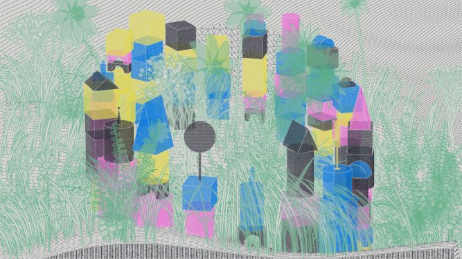 Coded in Vanilla JS, the project combines Yazid's iconic “Hashed/Hatched” aesthetic incorporated into childhood wooden toy block structures, and Zancan's signature lush foliage and framework, which enables all iterations to be plottable.