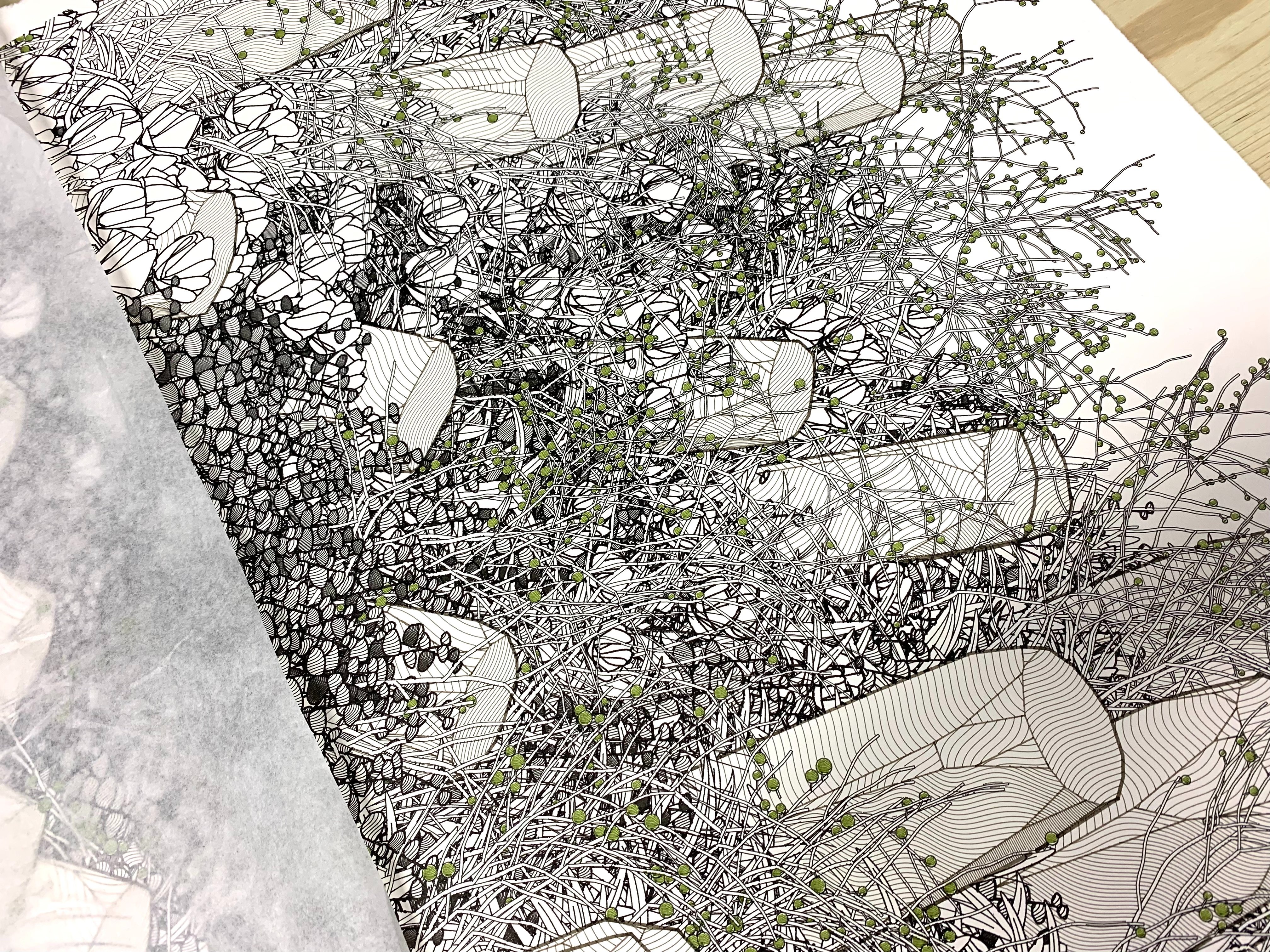 - Pen plotter drawing made from original generative design coded in Javascript